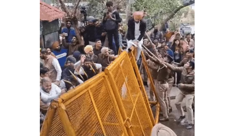 पंजाब। पंजाब की आम आदमी पार्टी (आप) सरकार के मंत्री हरभजन ईटीओ को बैंड बजाने वाला और 3 मिनट में गर्दन मरोड़ने पर दिन भर बवाल मचा रहा। आप के नेताओं और वर्करों ने चंडीगढ़ में बैंड-बाजा बजाकर प्रदर्शन किया। इसके बाद वह सेक्टर-4 के MLA हॉस्टल से बैंड वाला बयान देने वाले कांग्रेस विधायक दल के नेता प्रताप सिंह बाजवा का घर घेरने निकले। हालांकि 15 कदम पर ही चंडीगढ़ पुलिस ने उन्हें रोक लिया। यहां पर आप वर्करों ने बैरिकेड तोड़ने की कोशिश की। जिसके जवाब में चंडीगढ़ पुलिस ने वाटर कैनन से पानी की बौछारें मारीं। जिस वजह से आप नेता व वर्कर आगे नहीं बढ़ सके। इसके बाद उन्हें हिरासत में ले लिया गया। हिरासत में लिए नेताओं में वित्तमंत्री हरपाल चीमा, मंत्री हरभजन ईटीओ और स्वास्थ्य मंत्री बलबीर सिंह भी शामिल थे। आप के प्रदर्शन के बाद पंजाब SC कमीशन एक्शन में आ गया। कमीशन चेयरमैन जसवीर सिंह गढ़ी ने प्रताप सिंह बाजवा को 11 फरवरी को दोपहर 3 बजे पेश होने को कहा। अमृतसर रूरल SSP से भी जांच रिपोर्ट मांगी गई है। यह विवाद बाजवा के उस बयान से शुरू हुआ, जिसमें उन्होंने अजनाला रैली में कहा कि हरभजन ईटीओ बैंड बजाता था, लेकिन अब वह पंजाब का बैंड बजा रहा हैं। इसके बाद कांग्रेस के प्रधान अमरिंदर राजा वड़िंग ने सीधे मंत्री की गर्दन मरोड़ने की बात कह दी। राजा वड़िंग ने कहा कि सिर्फ 3 मिनट लगते हैं। राहुल गांधी ने हमें सिखाया है कि डरना नहीं है।