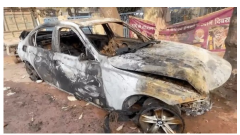कुंदनपुरी मेन रोड पर ट्रांसफार्मर से टकराई बीएमडब्ल्यू कार, जलकर हुईं खाक ..