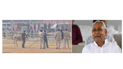 सीएम नीतीश के हेलीपैड में घुसा बैल, सुरक्षा में बड़ी चूक, पुलिस वालों को दौड़ाया; बचने के लिए फायर ..